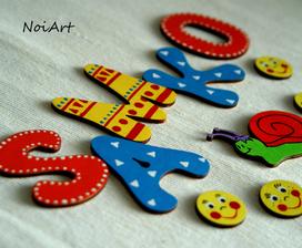 Písmenká sú ručne maľované, používam farby vhodné na detské hračky. Ozdobte si stenu, dvere, nábytok, chladničku...