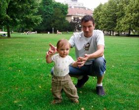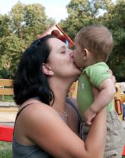 viktor uz lezie rychlostou blesku, postavi sa ked sa ma coho prichytit, konecne zacal jest sam chrumky ( ked neviem co s nim , chrumka zarucene zabera : ) ), stale chce chodit, neznasa ohradku a ma 3 dolne zuby, horna jednotka a dvojka sa uz prerezavaju.