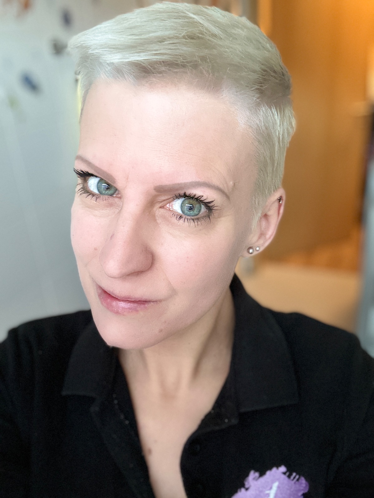 Ja sla do velmi kratkych . Predtym som mala undercut a vlasy pod ucho.sivo. Teraz blondierovala plus do siva Tönung.