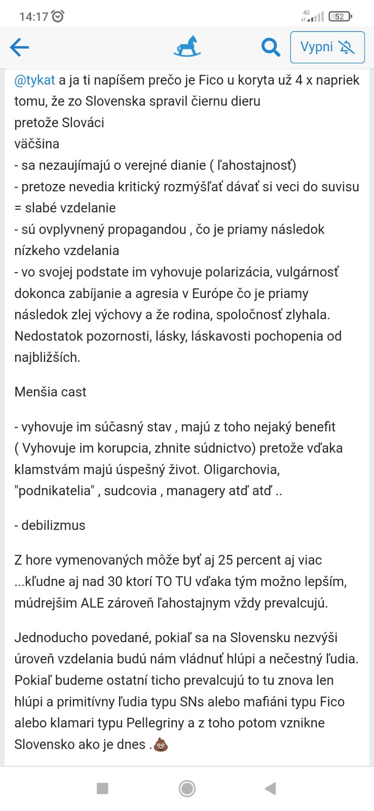 Nech už to skončí,celé voľby,lebo toľká zloba čo je v korcokovych voličoch,pardon,v tých inteligentných mamickach na modrom koní, ktoré ,,majú,,zdravý rozum je už moooc neznesiteľné. Zloba,agresivita, vizitka vaša . A taký je aj Korcok, ten,ktorého podporuje Jaro Naď,taký istý ako vy,, Heger,PS, KDH (už ani nie😄.) Pelleho podporujú všetci ostatní ✌️.