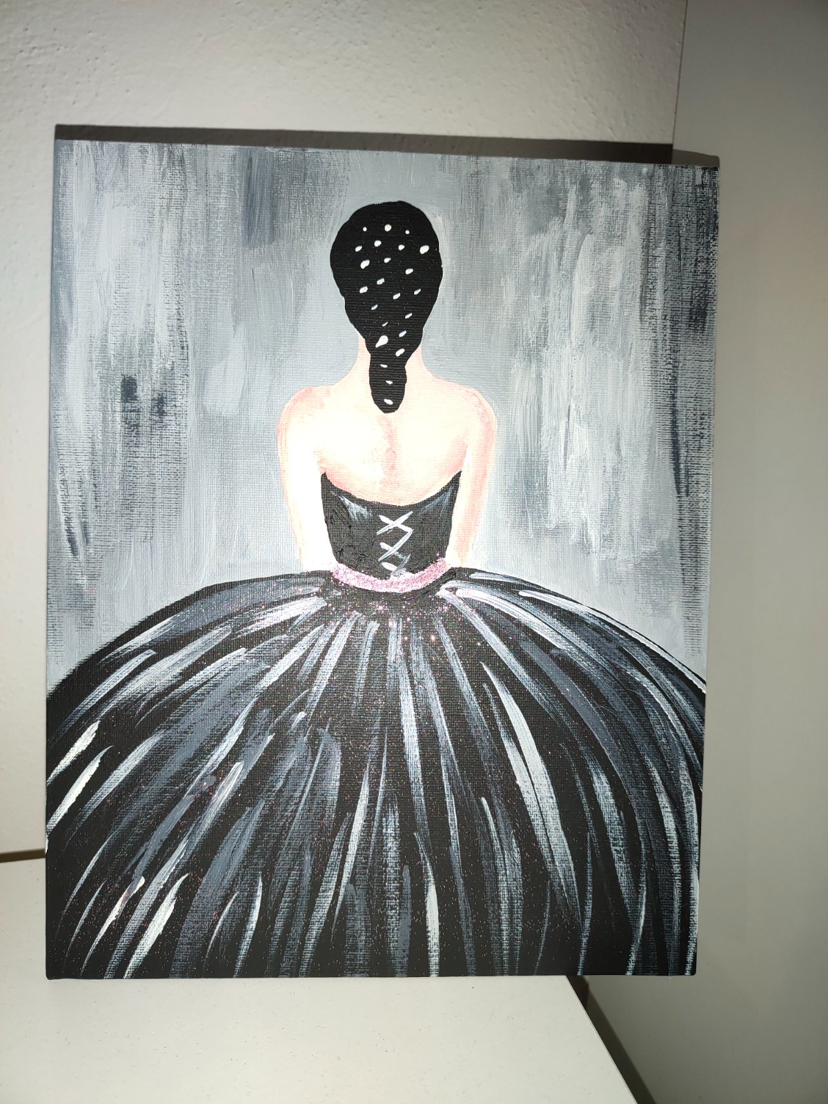 @katenka2 preco smutne? Hodí sa mi do obývačky 😅. Ja milujem čiernu a na sukni a opasku su trblietky, ružové... Len nie sú na fotke moc vidieť. Mozno na tejto s bleskom to bude vidieť lepšie.