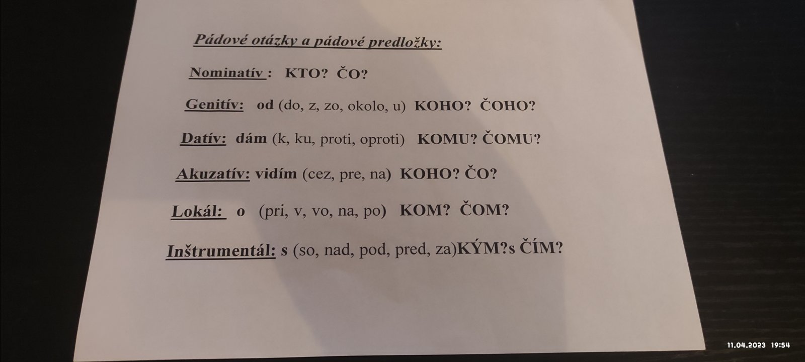a samotné predložky by som tiež nedávala, pretože väčšina predložiek má väzbu s viacerými pádmi a potom to deti tiež mýli. Napr. predložka o sa síce najčastejšie viaže s lokálom (hovorili o filme), ale môže sa viazať aj s A (opri sa o mňa). Podľa mňa a mojich skúseností je to sloveso najspoľahlivejšie