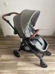 Šikovný športový kočiar s veľkou strechou, ľahký, otočný v obidvoch smeroch, skladný.
