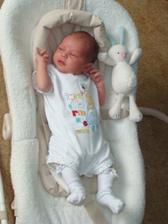 Tak už som tu. Ponáhľala som sa na svet, ale na poslednú chvíľu som si to rozmyslela, tak museli maminke robiť sekciu. Bráško ma dostal ako "darček" za vysvedčko. Neviem, či je z toho na mäkko, ale asi ma ľúbi, keď ma stále bozkáva.....veď si na seba čoskoro zvykneme.