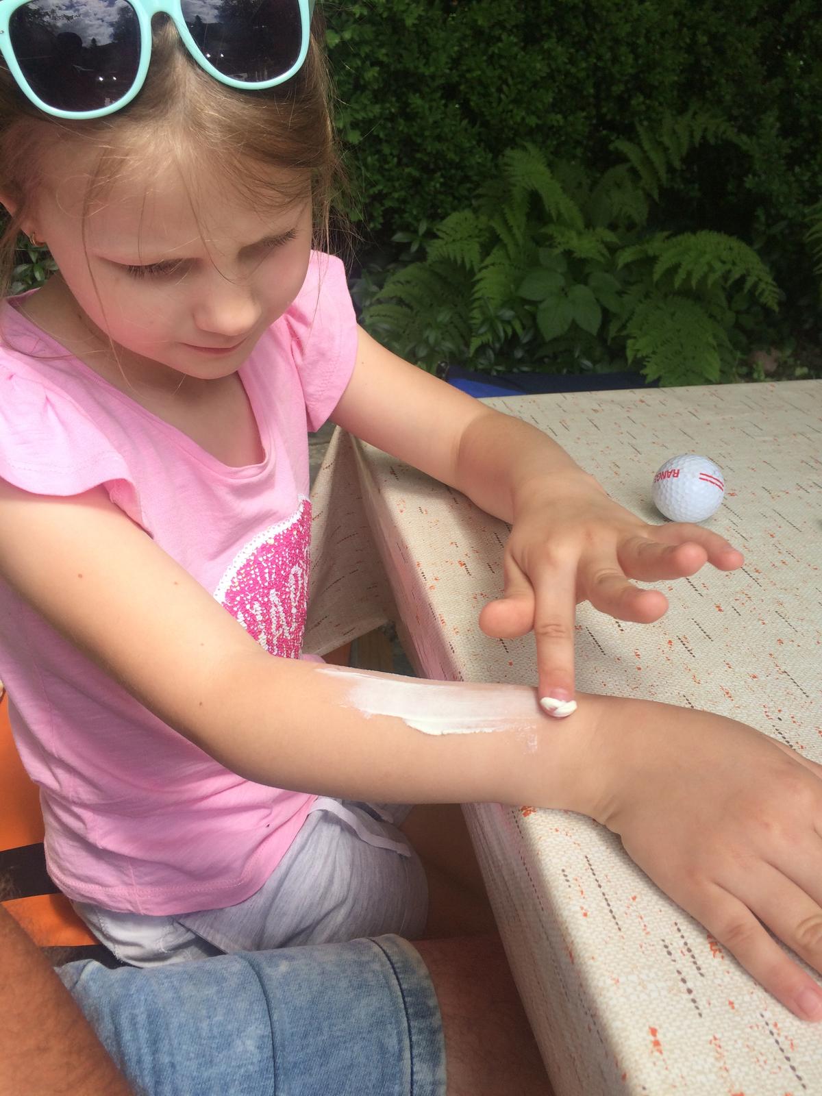 Natrieť sa dokázala aj sama, krém nezanechal na rukách mastný film, dobre sa vpil a čo je podstatné, dcéra šla nakrémovaná do bazéna. Poznáte to. Natriete sa, nečakáte a šup do vody. Na hladine okolo sa vzápätí objaví mastná škvrna akoby ste sa natreli olejom. Tak tento krém to nerobí. Jasné, že sme nečakali 10 minút, kým sa vsiakne do pokožky. Kto by vydržal 10 minút sedieť pri vode a nevojsť do nej? Moje deti nie. Skočila do vody hneď ako sa natrela a mastná škvrna nikde. Dokonalé.