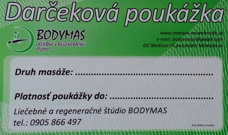 Ponukame Vam moznost zakupenia darcekovej poukazky na masaz podla vyberu - kontaktujte nas prosim tel. na c. 0908 866 497
