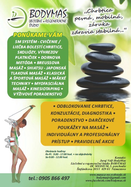 Štúdio BODYMAS so ZDRAVOU VÝŽIVOU nájdete v Námestove v OC MEDIUM na 3.posch.