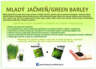 Prášok z mladých výhonkov BIO jačmeňa určený k príprave sviežeho prírodného nápoja s obsahom organicky viazaných vitamínov, minerálov, chlorofylu, vlákniny a aktívnych enzýmov. Všetky tieto živiny sa nachádzajú v rastline v prirodzenej forme, preto sú pre naše telo lepšie využiteľné ako syntetické vitamíny a anorganicky viazané minerálne látky, ktoré sa nachádzajú vo väčšine výživových doplnkov.