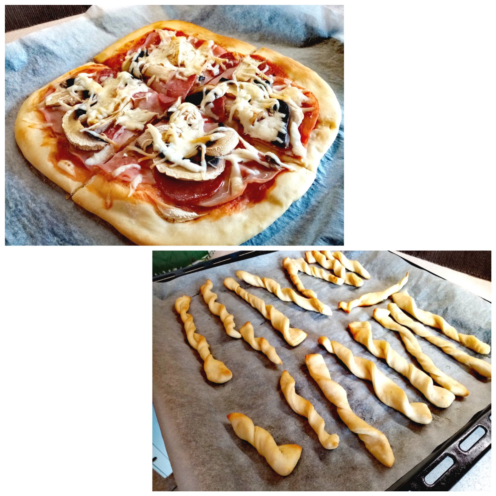 Mali sme chuť na pizzu, pre mňa paradajkový základ, šunka, suchá saláma, čerstvé šampiňóny, syr. Rozkrojené na 4 časti, pretože 8 by mi bolo veľa 😁😁😁 (ps. vtip 😉). Pre chalanov pizza tyčinky. Recept tu ➡️
