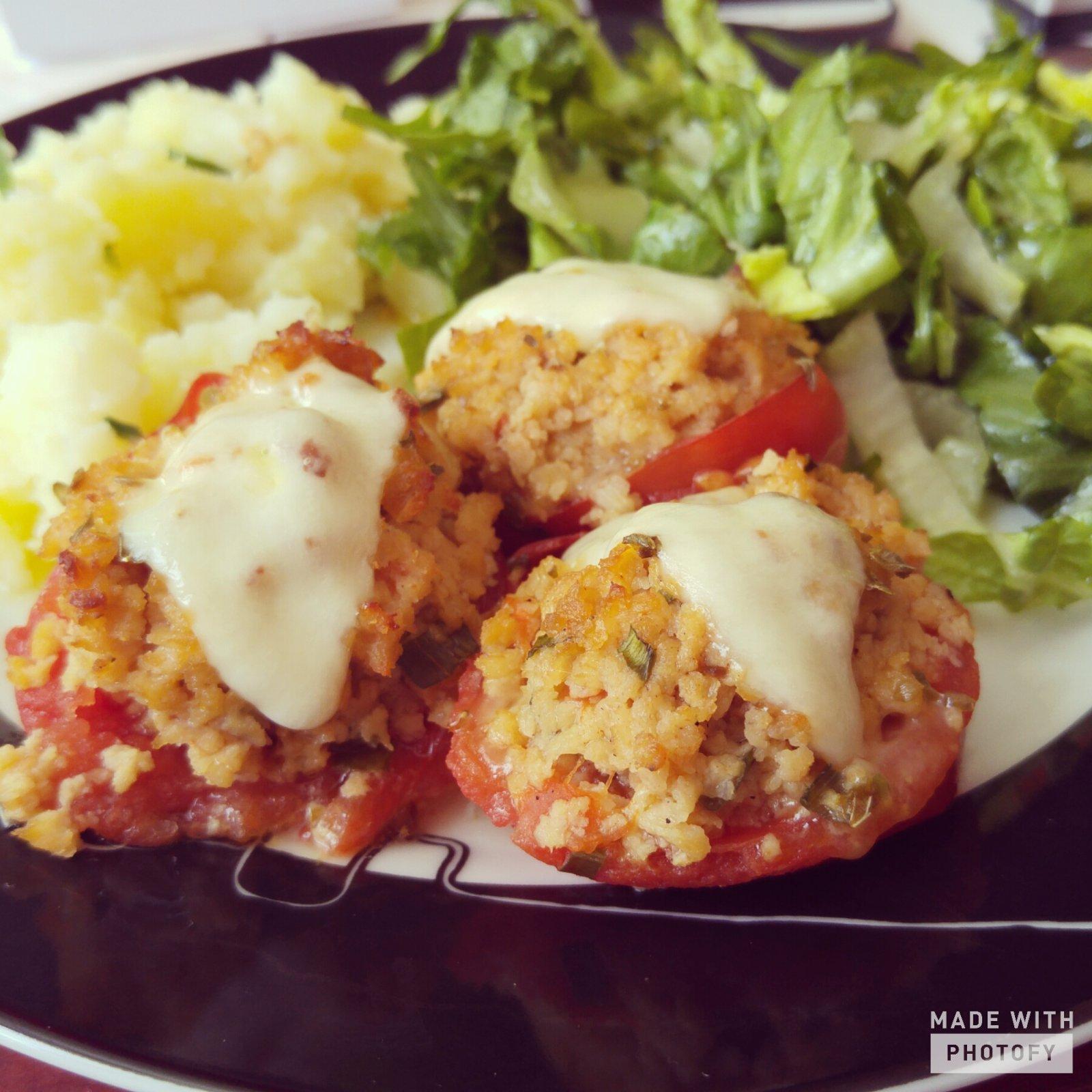 Zapekane rajčiny plnene mozzarelou a sojovym granulátom 😊