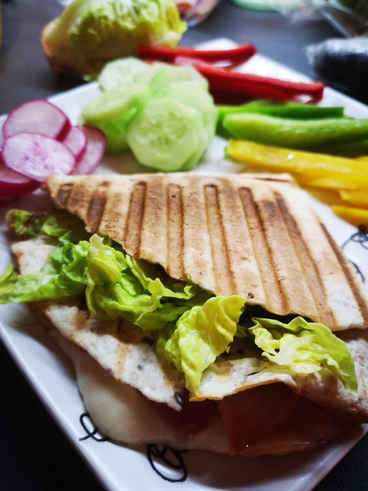 Inšpirácia z instagramu 👌🔝🤤Zapečený celozrnný wrap🥙🌯 (šunka🥓, mozzarella🧀, rajčinky🍅 a šalát🥬) so zeleninou 🥒🌶️🍡🔝🤤👌
