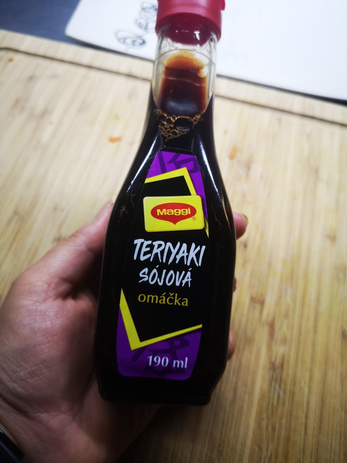 Mega. Prosím ťa môžem sa opýtať ta sójová teriyaki omáčka je urobená doma alebo kúpená hotová?