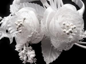 Kvetinová čelenka v bielej farbe nevinnosti je určená hlavne pre dievčatá, ktoré očakávajú Prvé sväté prijímanie, ale potešia i všetky princezničky, nevesty a víly. Nemá chýbať v účese žiadnej družičky.