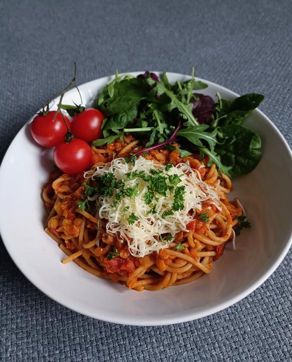 Špagety bolognese z červenej šošovice