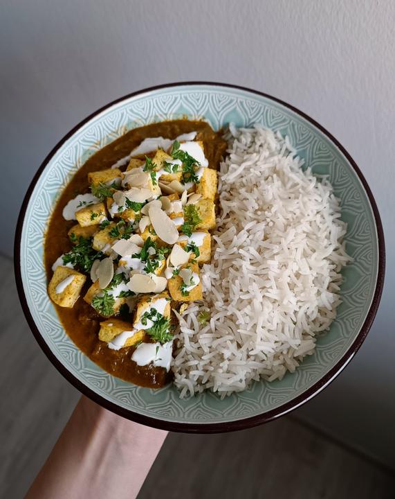 Dnešná India na večeru a vlastne aj zajtrajší obed: indické vegánske tofu palak (špenátovo-paradajková omáčka) s basmati ryžou 🤤👌.