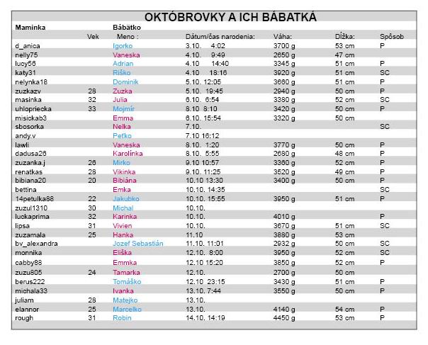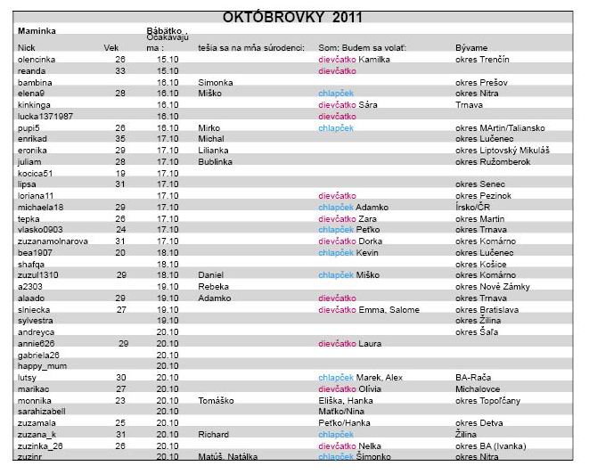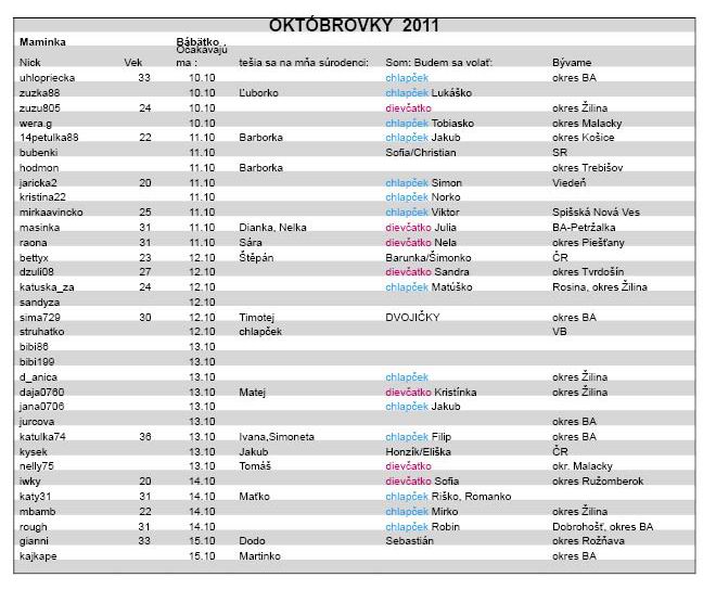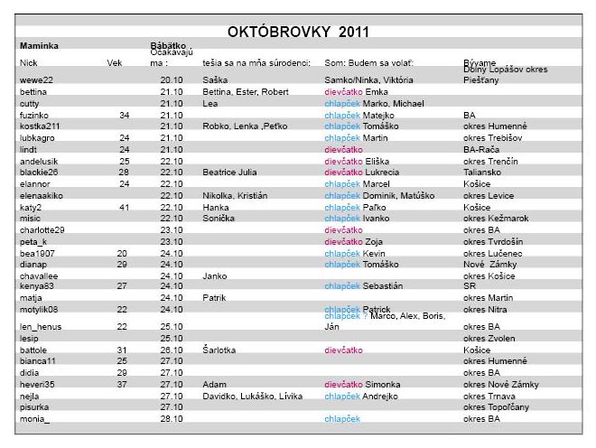 Októbrovky 2011 a ich bábätká