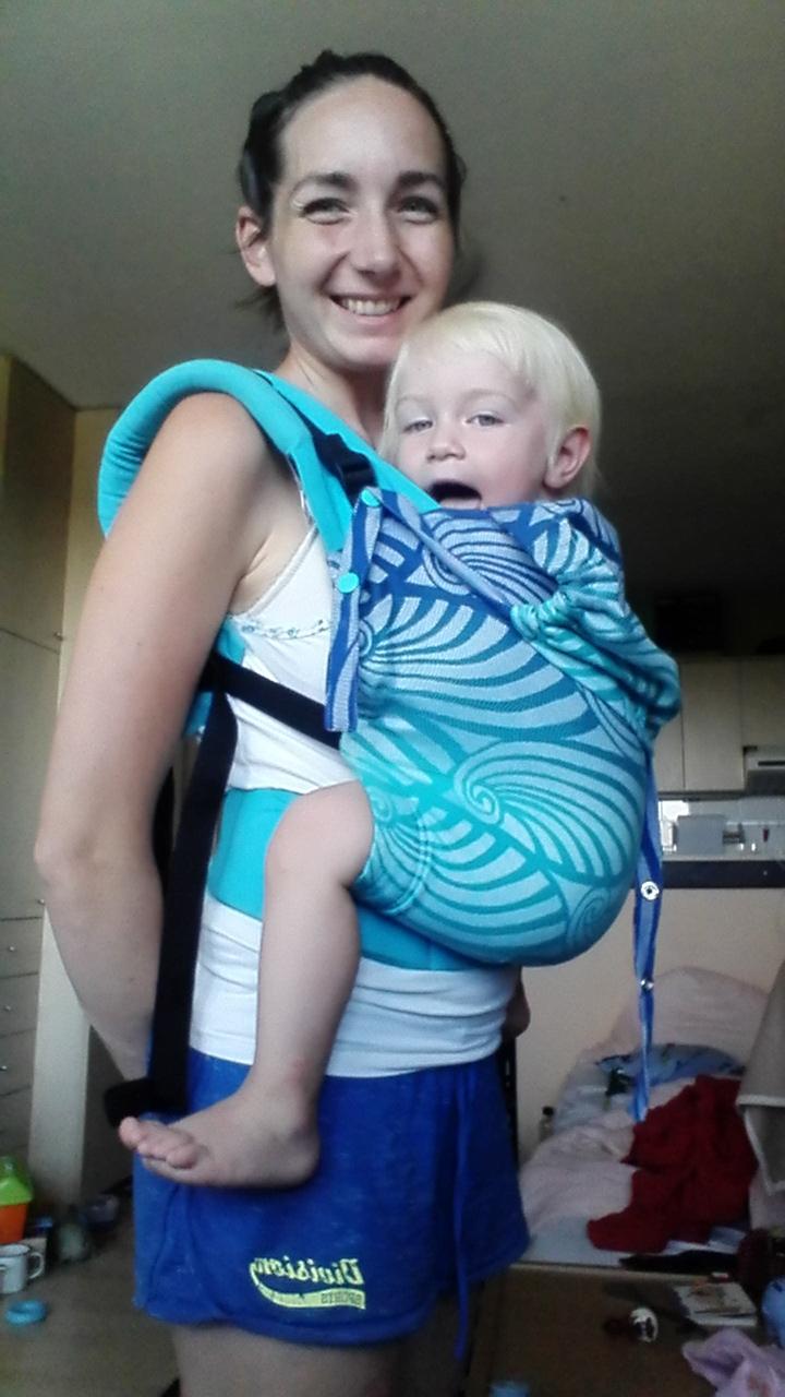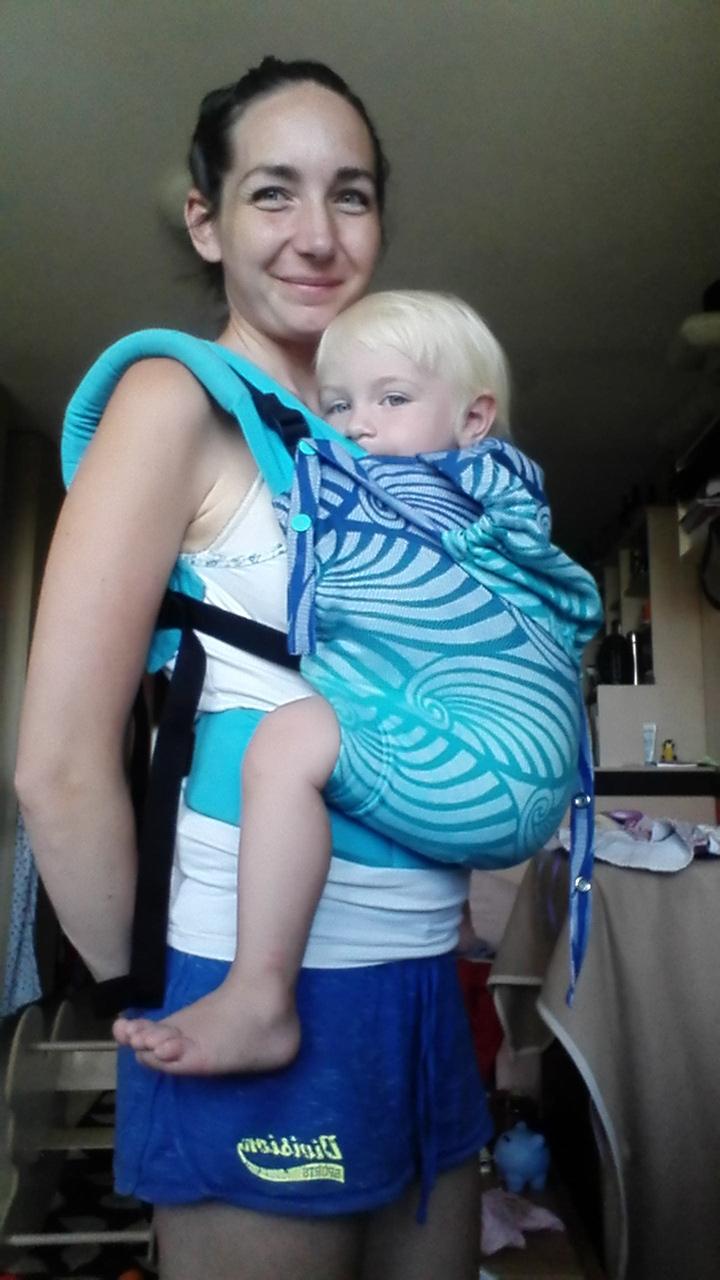 Opäť vďaka skvelej Hanke https://www.youtube.com/watch?v=6oB9g6o0OuI a skupine Nosíme naše deti na FCB som mala možnosť vyskúšať české nosítko MoniLu. Testovala som verziu MAXI, odporúčanú výrobcom od cca 18 mesiacov a 85cm do cca 3 rokov. Evička mala v čase testovania 20 mesiacov a cca 84cm výšku, a nosič jej sadol ako uliaty, teda so spodnou hranicou sa plne stotožňujem (vrchná je prudko individuálna, takže tú riešiť nebudem).