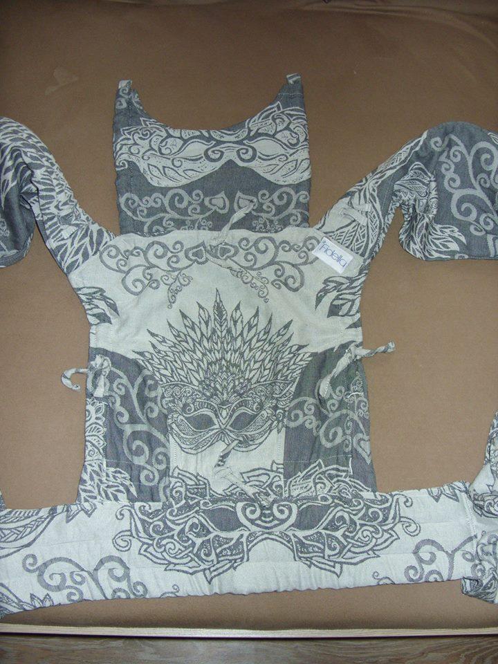 V našich končinách pomerne neznámy, ale veľmi príjemný viazací nosič – teda popruhy aj bedrový pás sa viažu. Celý zo šatky, ramenné popruhy sú krásne široké, veľmi pohodlné.