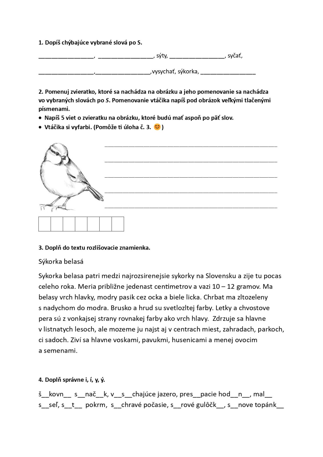 SJL - 3. ročník - Vybrané slová po S + opakovanie
