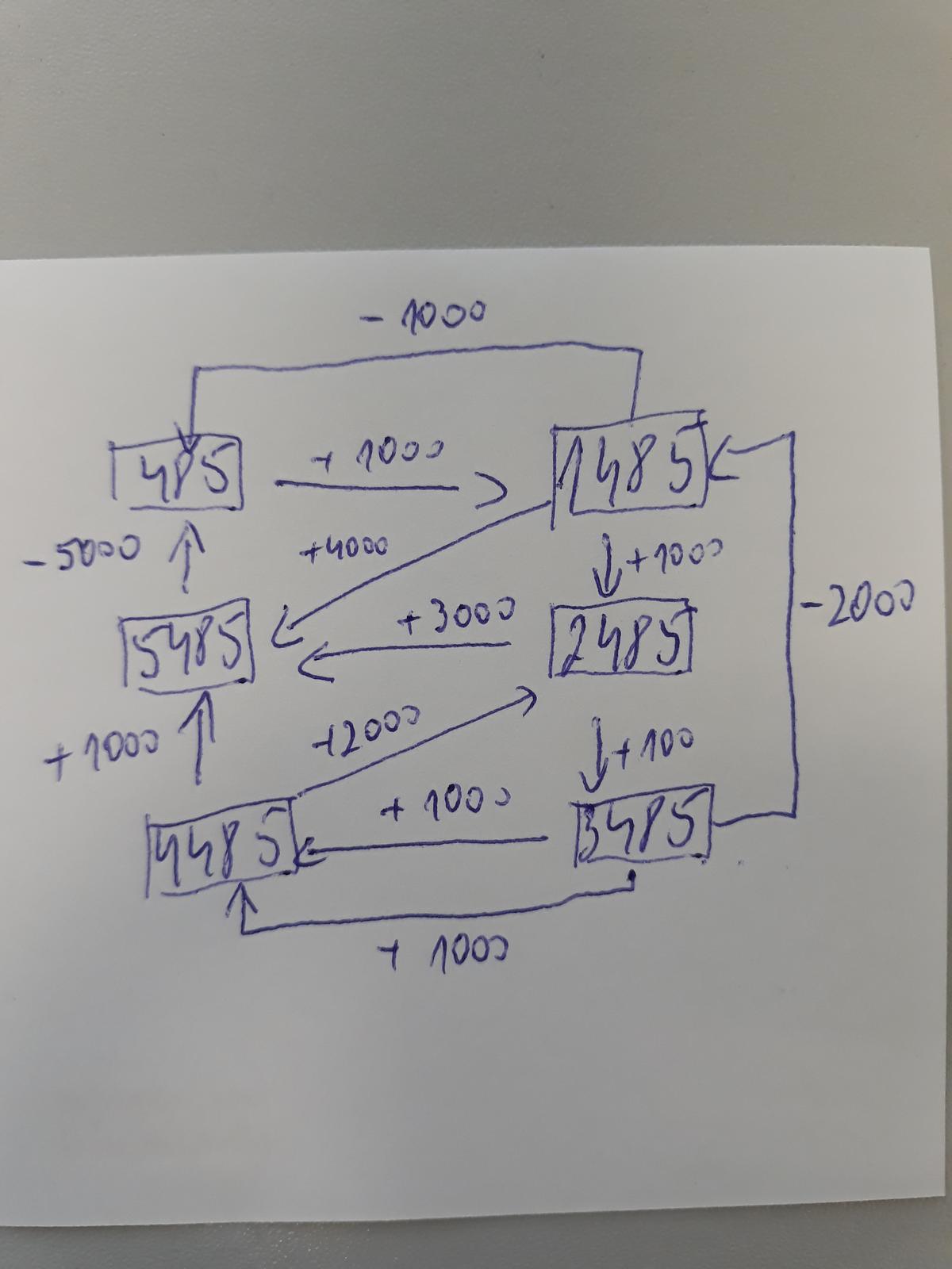 a co na tom nevies? pripocitvat a odpocitavat 1000 k 2485? najprv ides len po ciernych sipkacvh takze horne policka budu 1485 (vpravo) a 485 (vlavo), dole budu 3485(vpravo) a 4485 (vlavo) a este odtial sipka hore 5485 (stredny stvorcek) potom klasicka odcitavanie a scitavanie po zelenom a modrom smere
