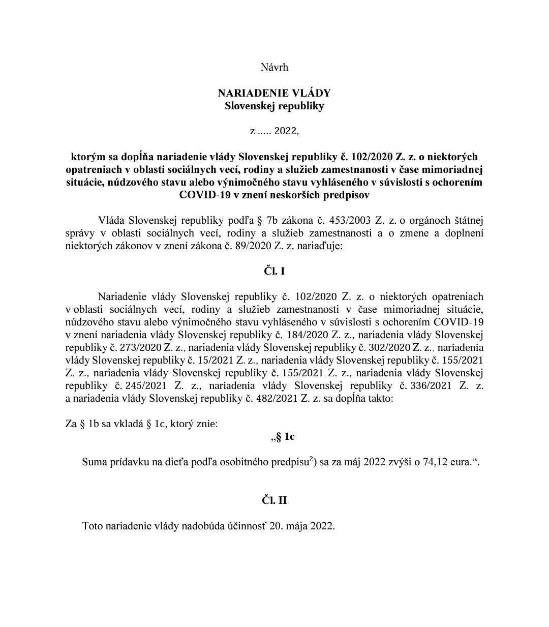 „Nariadenie sa predkladá v súvislosti so zvýšenou mierou inflácie, ktorá bola spôsobená najmä v súvislosti s aktuálnou situáciou nadväzujúcou na ekonomické dôsledky pandémie ochorenia COVID-19 a zvyšujúce sa ceny energií,“ uviedlo ministerstvo práce a sociálnych vecí.