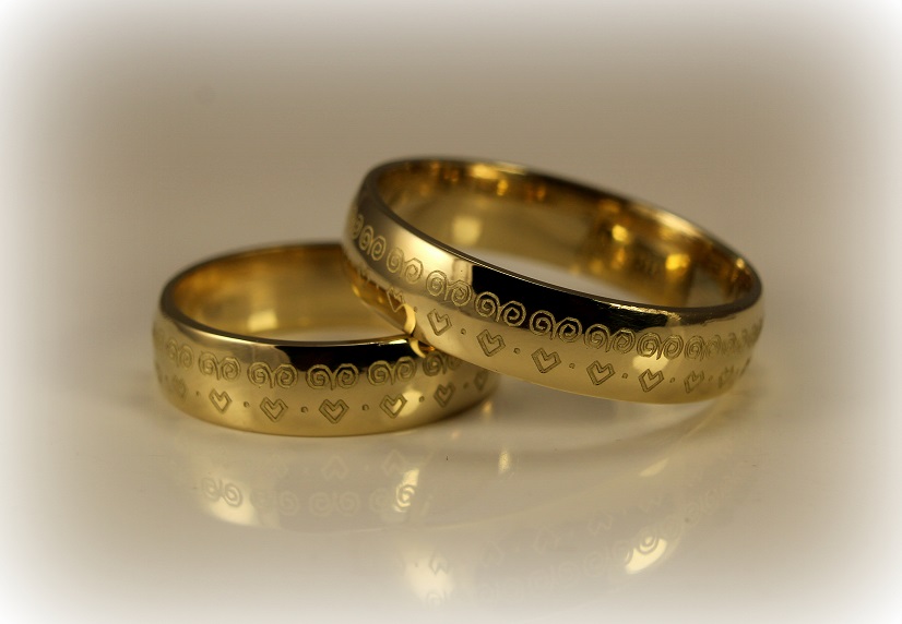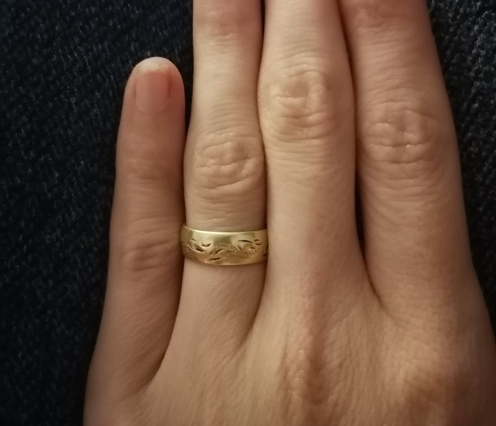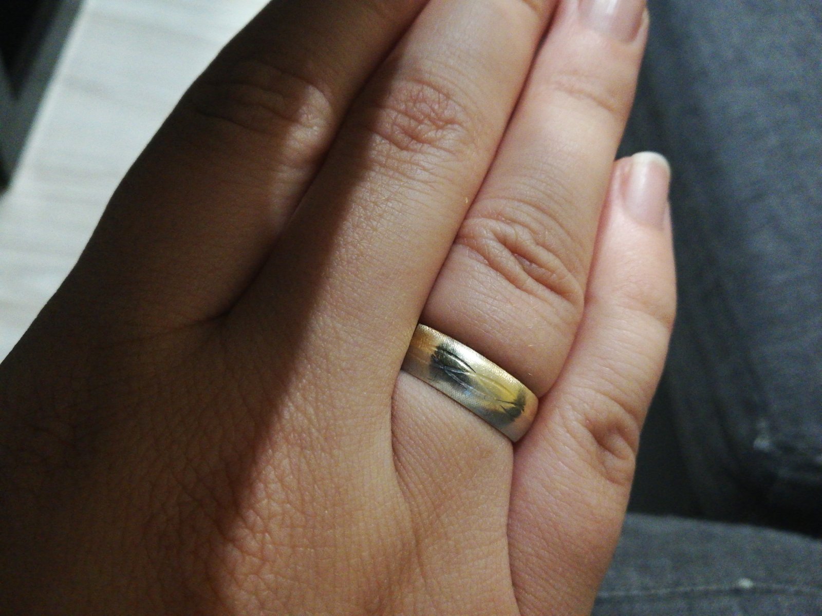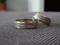 Obrúčky nosíme stále na ruke ja aj manžel 4 roky zatiaľ sme ich nedávali čistiť ani raz mame kombinované žlté zlato po kraji a biele v strede s tým ze manžel má hladkú a ja mam v nej také gravírovanie a zo spodu mame dátum svadby a ja ju mam stále ako novú 🙂
