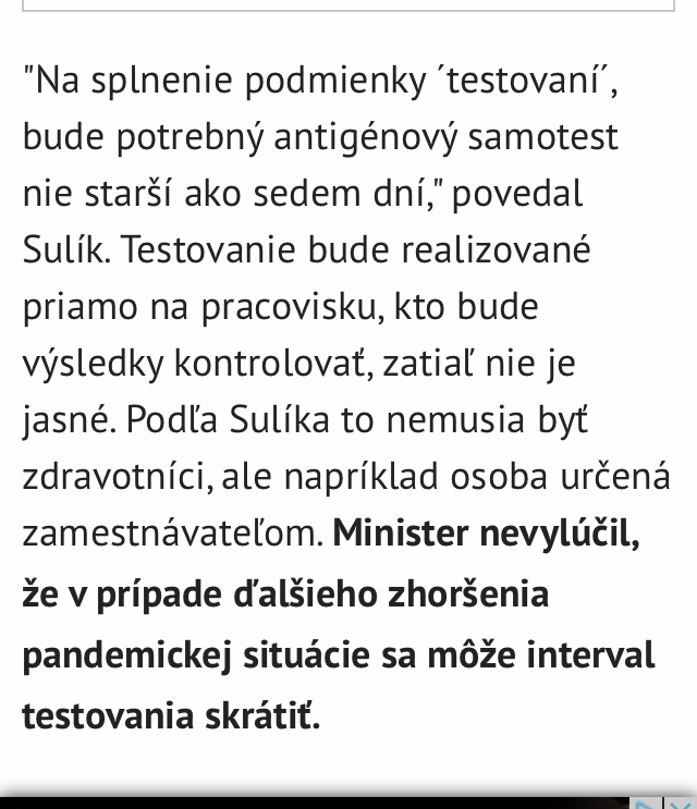 🔺Sulík teraz vyhlásil, že zamestnanci majú použiť antigénové samotesty nie staršie ako 7 dní a v januári ich štát preplatí.🔺