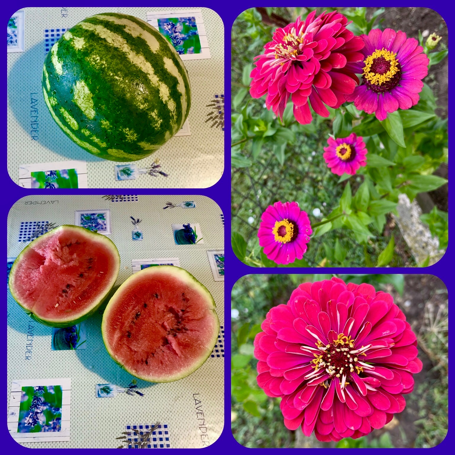 Vlastnoručne dopestovaný melónik a cínie, juj, teším sa veľmi 🥰😘
