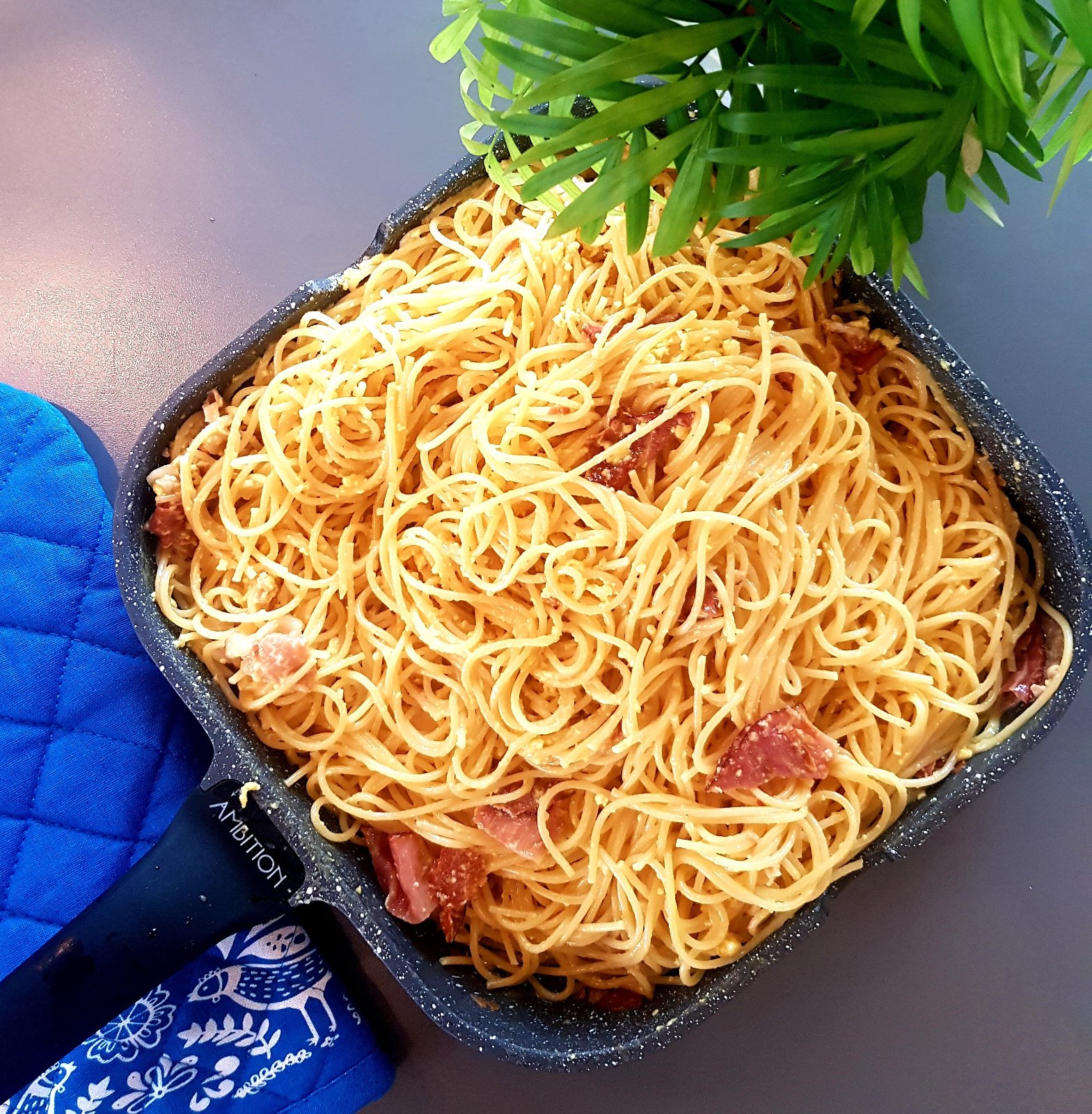 Do minimalistickej zbierky panvíc (mali sme 1, slovom jeden kus panvice, v ktorom som robila všetko od mäsa, cez palacinky, až k rizotu všetko) nám parádne zapasovala grilovacia panvica. Vyskúšali sme ju hneď niekoľkokrát. Je úžasná na opekanie mäska, grilovanie syru a aj pečenie slaninky na naše obľúbené špagety Carbonara. Následné čistenie je ako z reklamy na saponát - utrieš, opláchneš, máš.