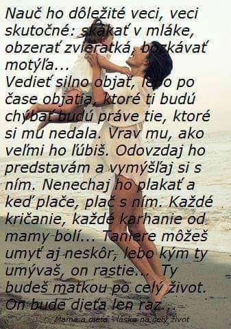 A niekedy ma budeš nenávidieť, zavrieš mi dvere pred nosom. Budeš sa diviť, prečo nie som ako iné mamy.