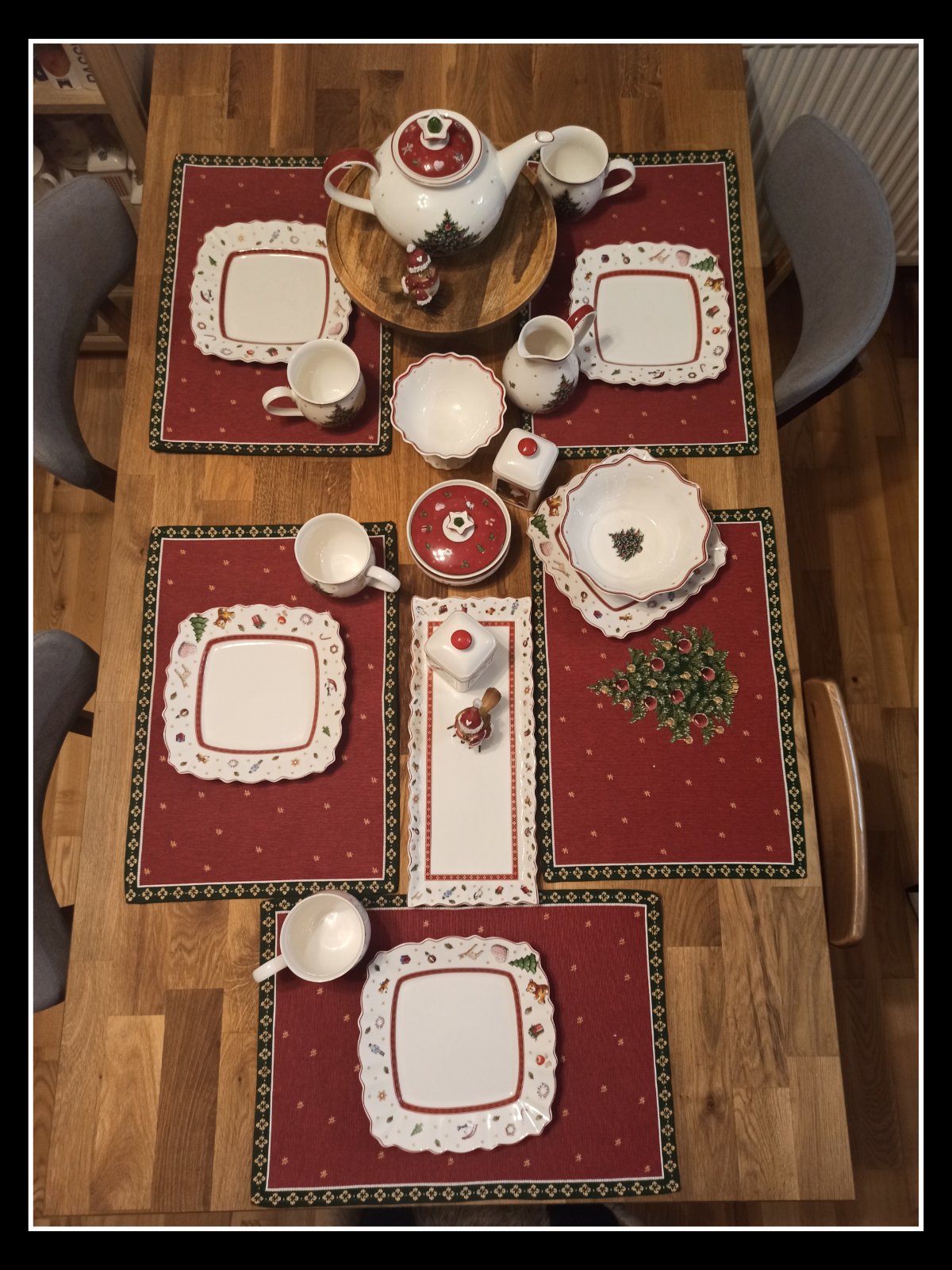 Mám takúto raňajkovú sadu, dokúpila som nejaké šálky a servirovacie taniere. Prijateľné ceny v xxxlutc, uvidím aká bude kvalita a či vydržia aspoň jedny Vianoce kompletné.