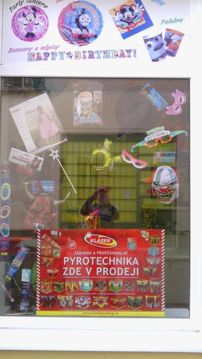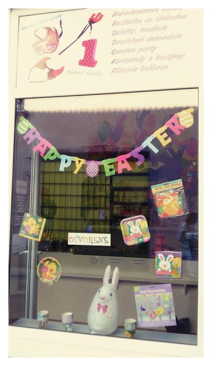 obchodík sa nachádza v centre Levíc na ulici I.Krasku 20 (v podchode pri Holland pube) – otvorené pondelok až piatok od 10:00 – 16:00 h a v sobotu od 09:00 – 12:00 h – je zameraný na predaj doplnkov ohladom narodenín, menín, tematické párty, masky, tortové sviečky, – veľký výber balónov rôzne farby potlače veľkosti, fúkame balóny héliom. – celoročne predávame pyrotechniku urobte si ohnostroj nielen na silvestra ale aj na narodeniny,svadbu – v prípade záujmu zašleme tovar aj na dobierku podla cenníka slovenskej pošty.