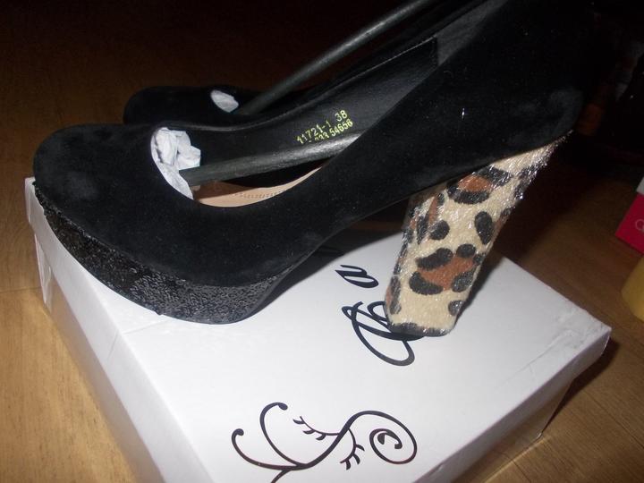 Predam tieto velmi pekne topanky č.38 doniesla mi kamoška z Holandska ale mna tlačia škoda ale na jednej fotke vidno vzadu na semiše je štuchnuta ale inač je v poriadku ja by som si nechala bo sa mi strašne pačia,material je semiš výška podpetku je 12,5 a plaforma v predu je 4cm