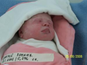 Dňa 25. augusta 2008 o 6. hodine a 30. minúte sa mojim narodením splnil mojim rodičom Blanke a Romankovi najtajnejší sen. Vážila som 3400 g a merala 50 cm, hoci som mala prísť na svet o tri týždne neskôr. Od toho okamihu robím mojim drahým rodičom veeeeeeeeeeeeeeľkú radosť. Romanka