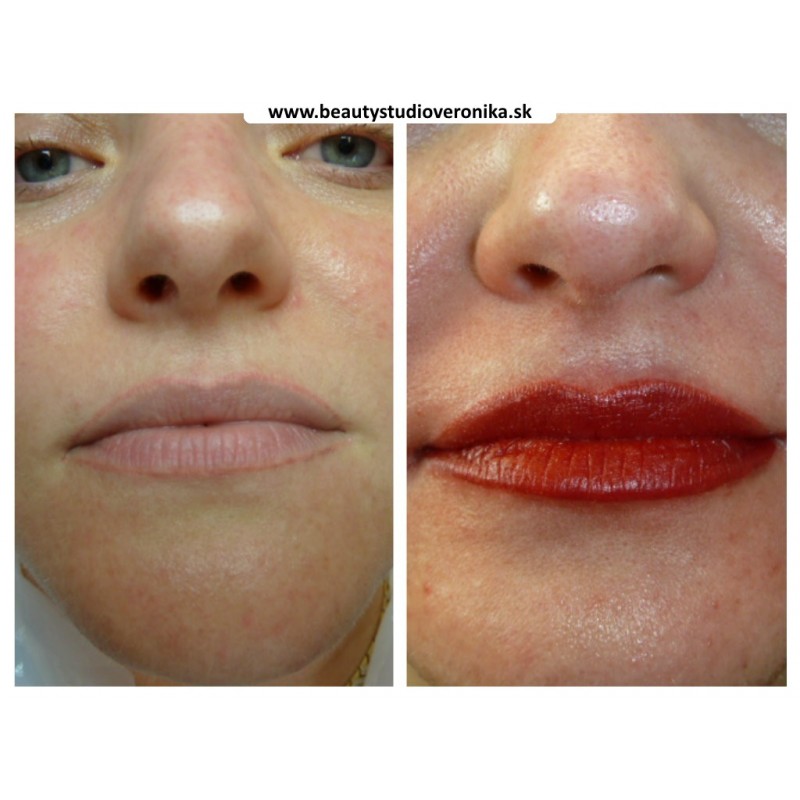 Na fotografii je vidieť čerstvo natetovaný permanentný make-up, čoho výsledkom je intenzívnejšia farba tetovaného miesta. Po vyhojení pokožky, ktoré trvá 7-10 dní, bude výsledný efekt o 2-3 odtiene svetlejší a tým aj prirodzenejší. Preto sa netreba obávať tmavšej a výraznejšej farby ihneď po tetovaní. Pri tetovaní sa musí prihliadať na požiadavky zákazníka, pretože každý zákazník má iné predstavy a požiadavky na farbu aj tvar tetovaného miesta.
