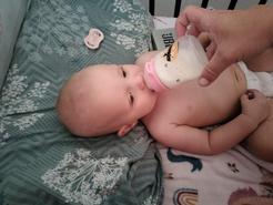 Naša malá bola spokojná, bruško nebolelo, aj stolica bola v poriadku. Už papá príkrmy, ale potom si dá ešte aj mliečko.