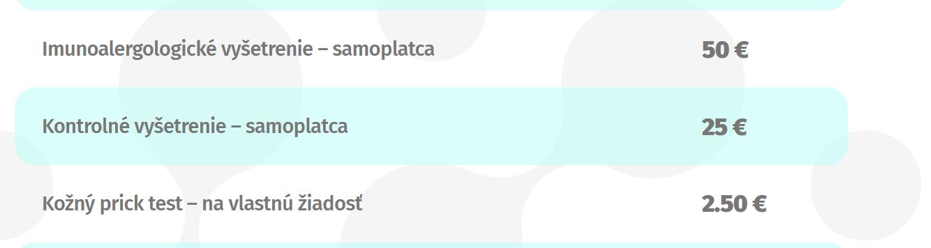 Ja chodim na imunologiu so synom.Platila som iba prve vysetrenie 20€-poplatok kedze sme z ineho okresu.Viac som tam uz nic neplatila