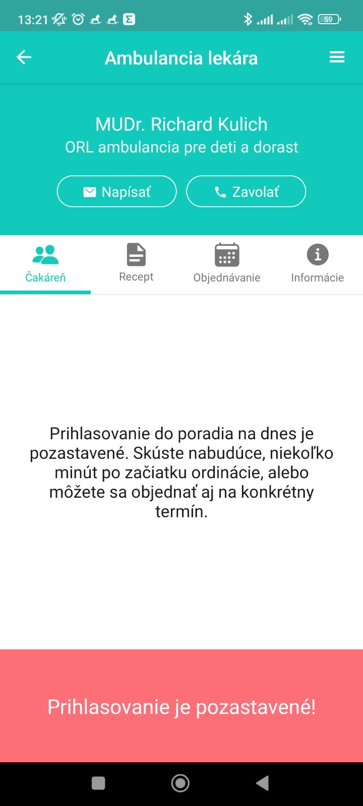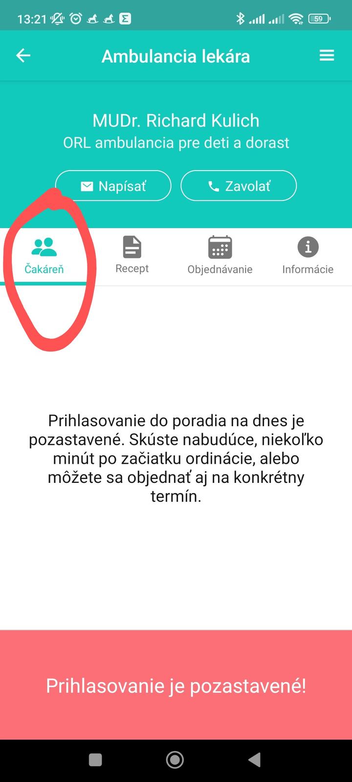 Musis cez cakaren, nie cez objednavanie. Objednavanie je na termin za poplatok. Cez Cakaren sa prihlasujes do poradia - ako ked prides pred ambulanciu si sadnut do poradia, len tu je to virtalne - ked dostanes poradie, tak ti napise kolko ludi je pred tebou, cas kedy sa predpoklada, ze prides na radu a este ti posle aj SMS, ked pred tebou budu dvaja ludia, aby si sa dostavila do ambulancie. POZOR - prihlasit musis dieta, nie seba - v nastaveniach aplikacie si zmen svoje meno na meno dietata pred tym, nez ziskas poradie.