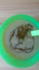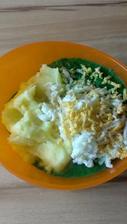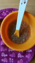 Lepok a pšeno úspešne zavedené, tak pokračujem orechmi. Začínam mandľami. Zaviedla som niekoľko druhov orechov, viď foto. Pokračovala som bielkovinou kravského mlieka /jogurt a melasou.