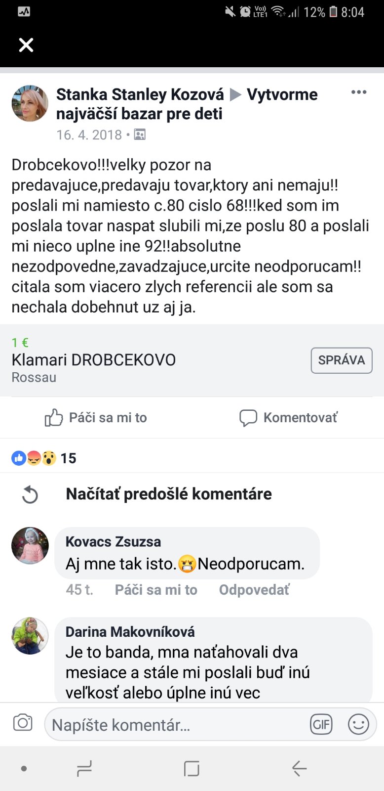 @petulda333 nechci, keď na mňa niekto natrafí. Prvé čo urobím, píšem recenziu na google maps, prípadne sa sťažujem, a idem so sťažnosťou až kde sa dá. A dôvod? Lebo chcem, aby sme sa tu mali na Slovensku lepšie. Aby sa vedelo, že nespapáme všetko z obchodu ako prasiatka, aby keď sa mi stratí zásielka, sa po nej zháňam až na ,,zbernom,, mieste takýchto zásielok, a podobne. Viem, že toto je cesta. Naopak, dobrých a poctivých ľudí si vážim a chválim.