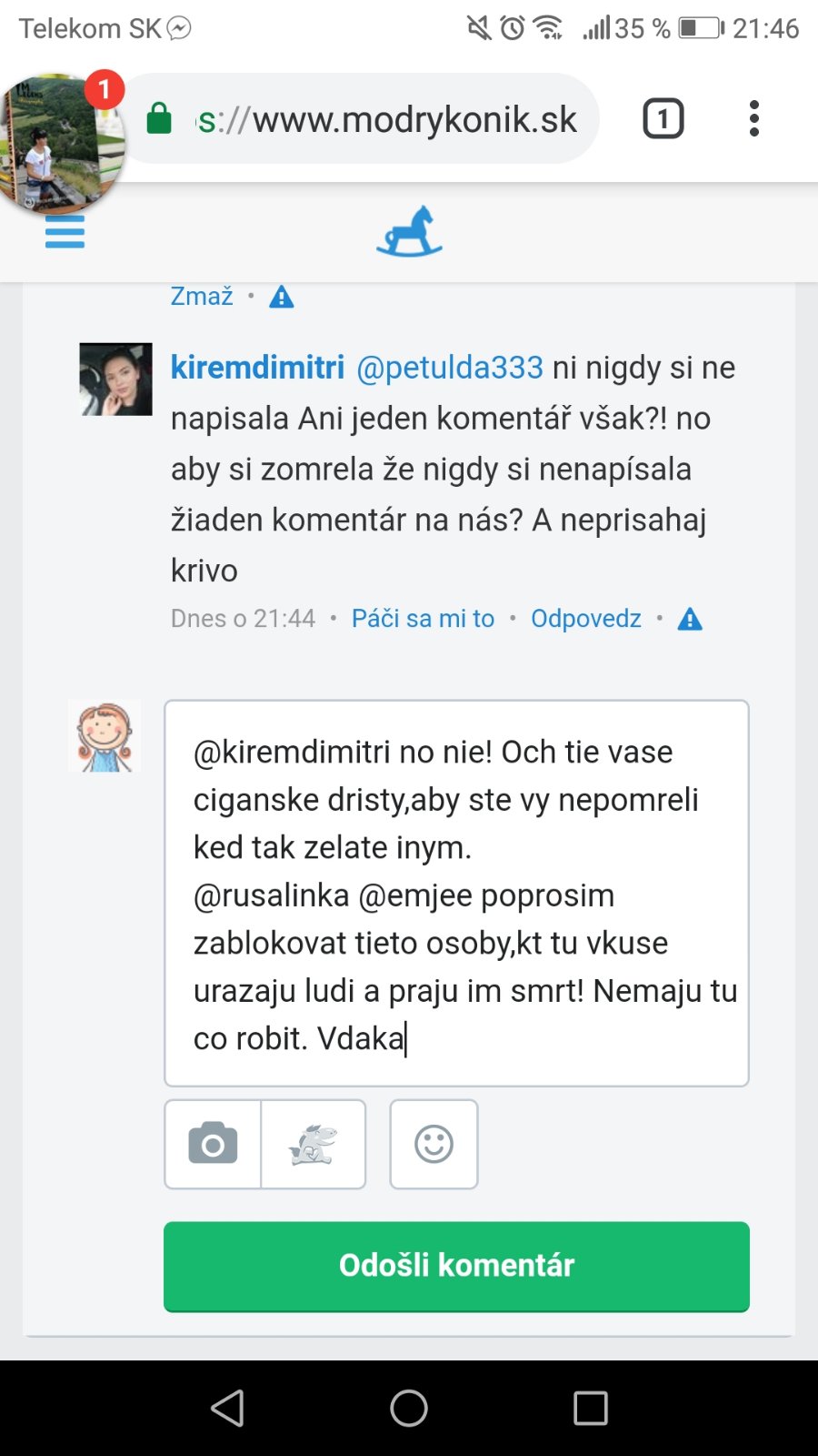 Otras toto a este mi odfoti ze som im koment dala,no dala ale jeden kde som pisala ako moj maly nespi. Ziadne urazky ani nic podobne,ani nevirm preco mna oznacili pod prispevok a urazaju. Ale obraz som si uz urobila
