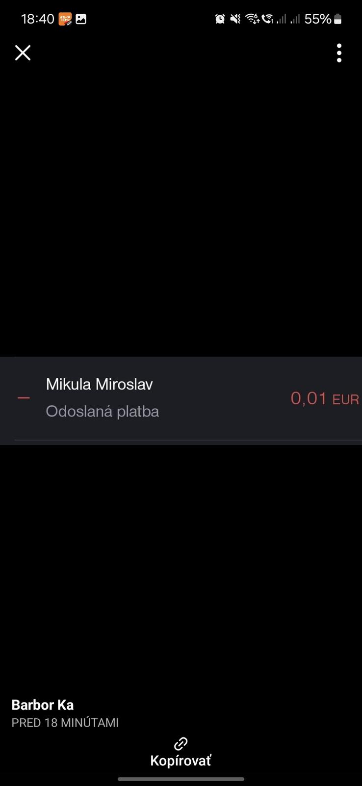 Je to Tatra banka, meno Mikula Miroslav. Tvrdila, ze je to jej priatel.