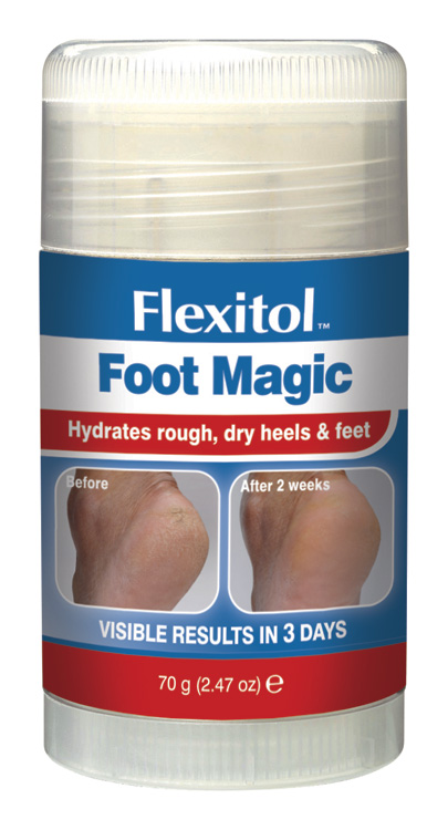 Hydratácia drsnej, suchej a popraskanej pokožky na pätách a nohách. Viditeľné výsledky už po 3 dňoch. Flexitol foot magic stick je pohodlná, ľahkoaplikovateľná pomôcka pre nohy so suchou pokožkou alebo s popraskanými pätami.