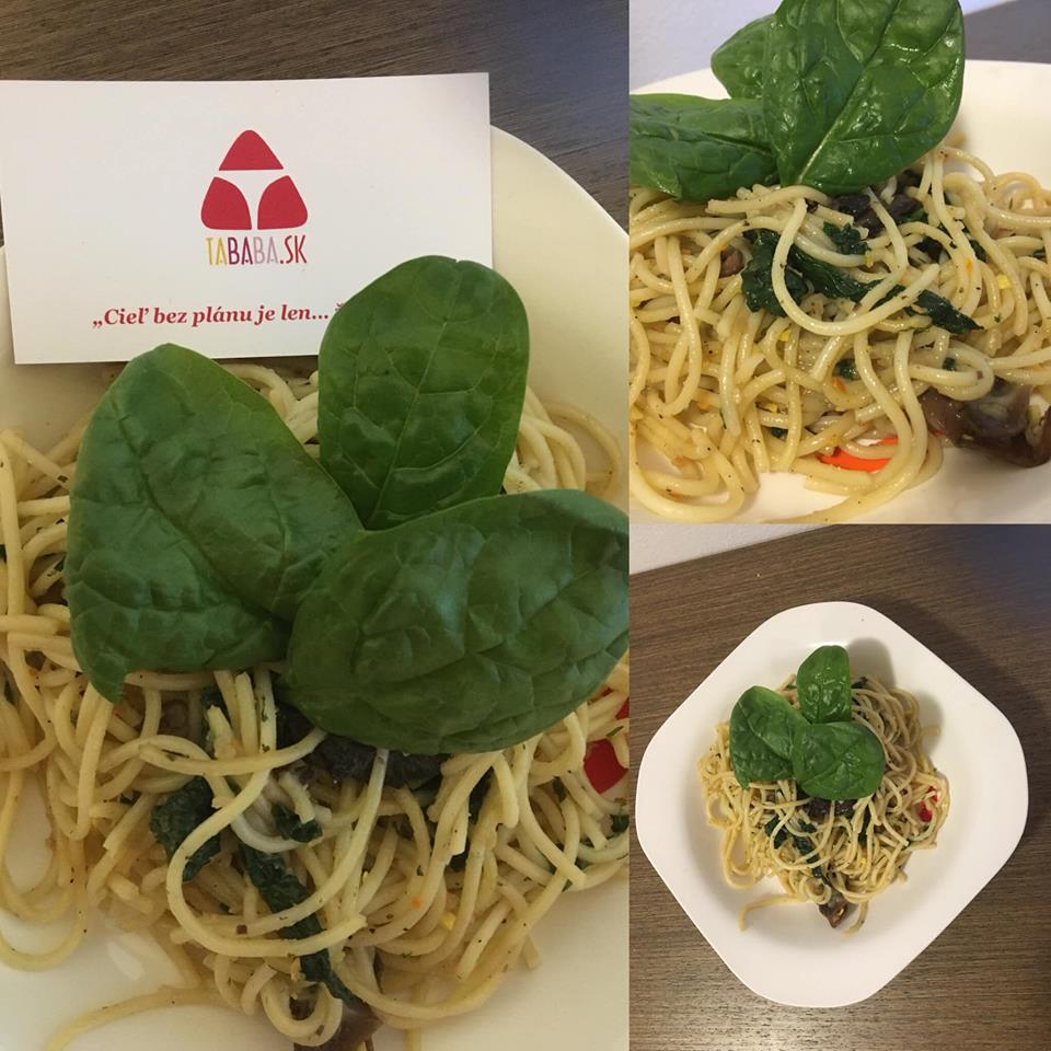Spenatove špagety s hubami