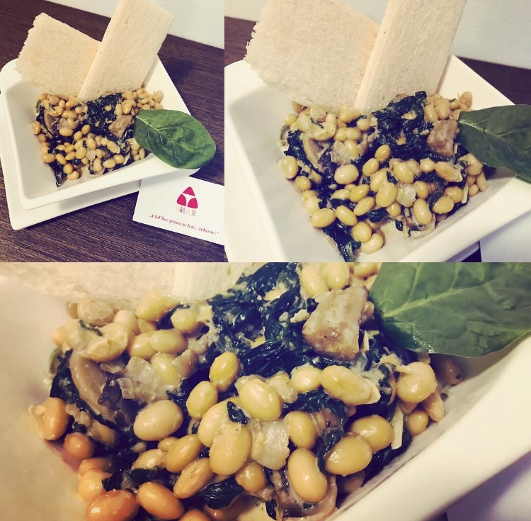 Sójové bôby s baby špenátom šampiónmi rastlinnou smotanou a bezlaktózovým parmezánom mňam 😀😁