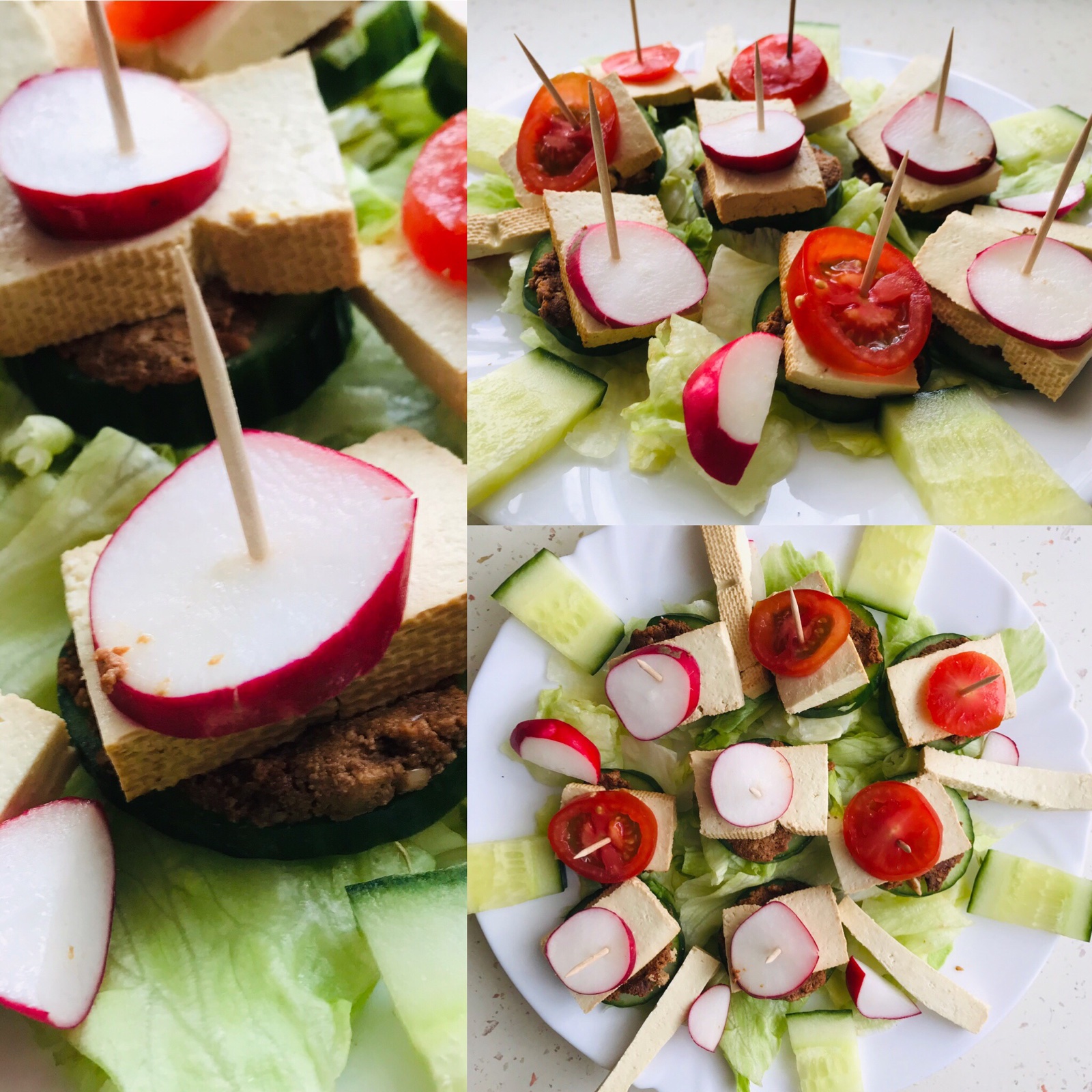 V jednoduchosti je krása 😀ľahká večera v podobe jednohubiek s údeným tofu syrom, domácou vegansku klobásou , ľadovým šalátom , reďkovkou a uhorkou 😆🥒🍅🧀🥬🥗 baby syr si dajte kľudne mozarelu a a koliesko šunky alebo klobásky vás tiež nezabije veď sú to