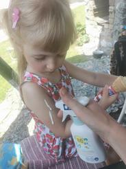 Prvé, čo ma prekvapilo, je jeho nanášanie pumpičkou. Hneď som ho dala na ruku mojej dcéry, no niekedy striekol aj mimo. To bola asi jediná nevýhoda. Inak veľmi príjemná vôňa krému, absolútne nie je mastný a nezanecháva pokožku bielu. Rýchlo sa vstrebáva a s účinnosťou sme boli veľmi spokojní. Ani jedna dcéra sa po ňom nevyhádzala, takže určite je aj pre citlivú pokožku vhodný.