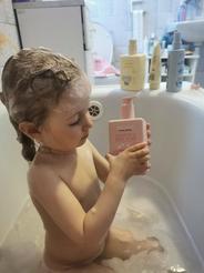Používali sme ho väčšinou ako šampón. Vôňa bola príjemná, penivosť má trošku menšiu ako iné produkty. Rozčesávanie vlasov sa mi zdalo ľahšie ako pri iných šampónoch, no na druhú stranu mala dcérka skôr mastné vlasy ako inokedy.