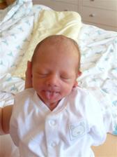 Náš Šimonko je už medzi nami, ponáhľal sa na svet už 9.3.2008 o 11:20, lebo chcel stíhať s tatom chodiť oblievať a šibať na Veľkú Noc. No najprv musí ešte podrásť, nakoľko váži len 2700 g a je dlhý 49 cm. Mamina a tatino z neho majú veľkú radosť🙂))