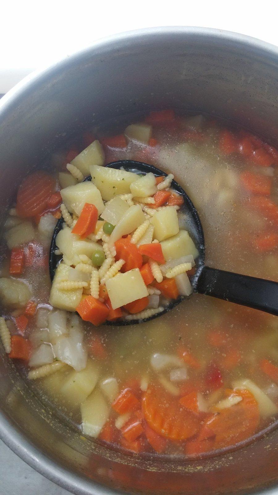 @placem jeeej...ved to uz si urcite inu urobila :( na masielku oprazis zeleninu aku chces...ja davam iba nastruhanu mrkvu a petrzlen (inu zeleninu mi dcerka nezje), zalejem vodou, dam bujon a ked vrie, nasadzam halusky z muky a vody..nedavam vajce, zdaju sa mi tvrde...pre mna jednoduche do 15 min. hotove, i ked bujon...no ale dobra 🙂